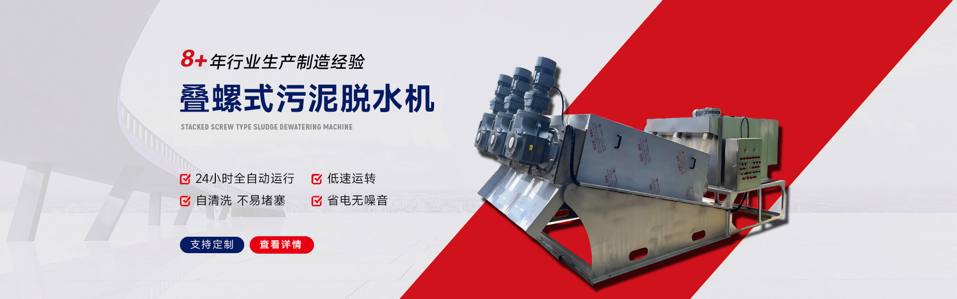 公司主營產品包括:疊螺式污泥脫水機、蔬菜清洗機、凈菜加工設備、核桃仁深加工設備、粽葉清洗機、鴨腸清洗機、玻璃瓶清洗機、行星攪拌炒鍋、巴氏殺菌機、肉松打絲機、攪拌機、拌餡機、煙熏爐、蒸煮鍋、切丁機、炒松機、羊蹄打毛機、斬拌機、劈拌機、豬大腸翻洗機、殺菌機、真空滾揉機、解凍機、食品剖切機、洗袋機、發酵室、洗靴機等等,可根據您的需求定制生產。